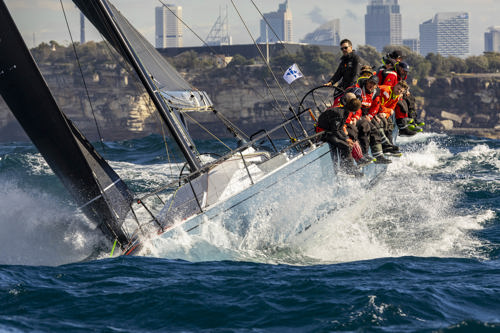 The first non-mini maxi to exit Sydney Harbour was Sebastian Bohm’s Smuggler, skippered by Tim Davis. As the reigning champion of the 2024/25 Audi Centre Sydney Blue Water Pointscore, many eyes are on Bohm and his crew to see whether they can continue their impressive run of form. She was quickly followed by Highly Sprung, Koa, Antipodes, Frantic and Sticky.